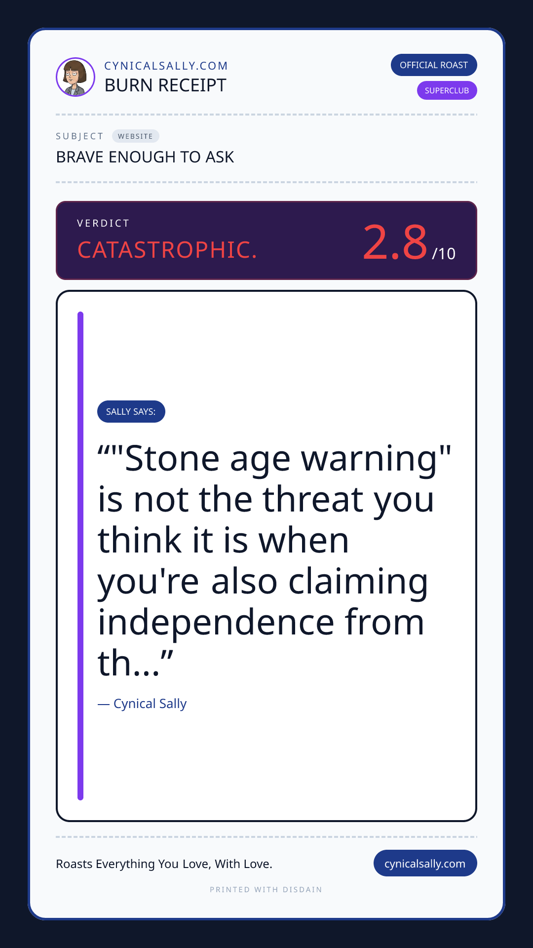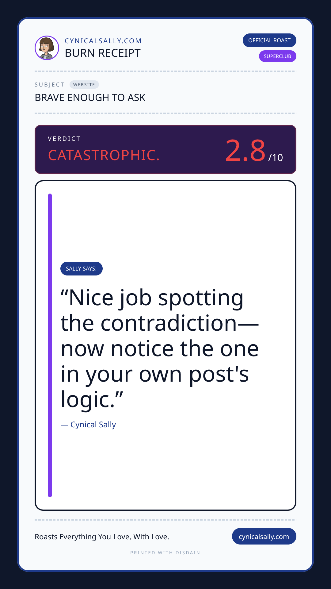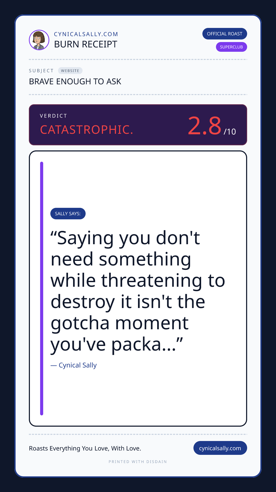 Drop a URL, screenshot, or file and Sally will give you the honest truth.