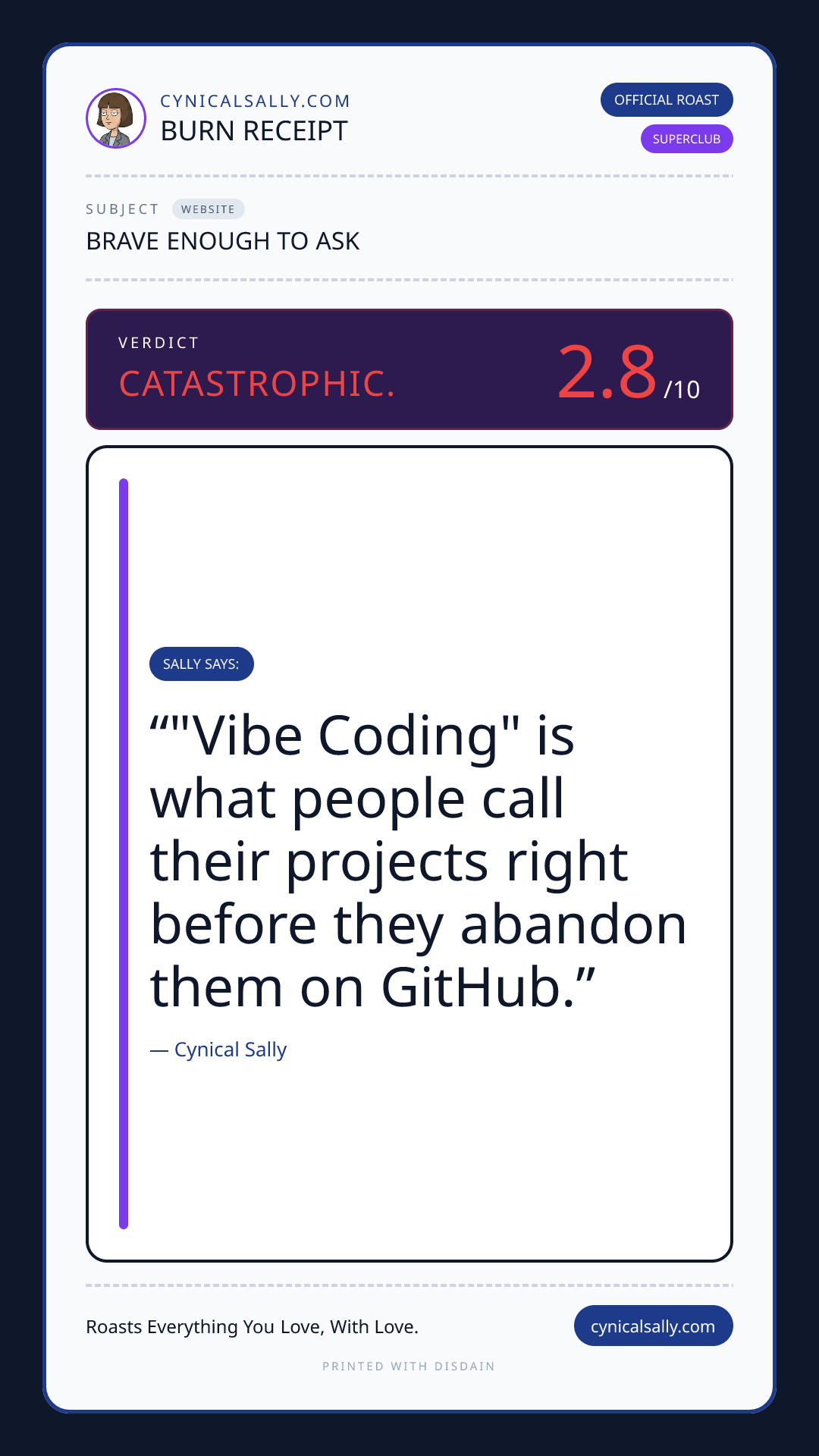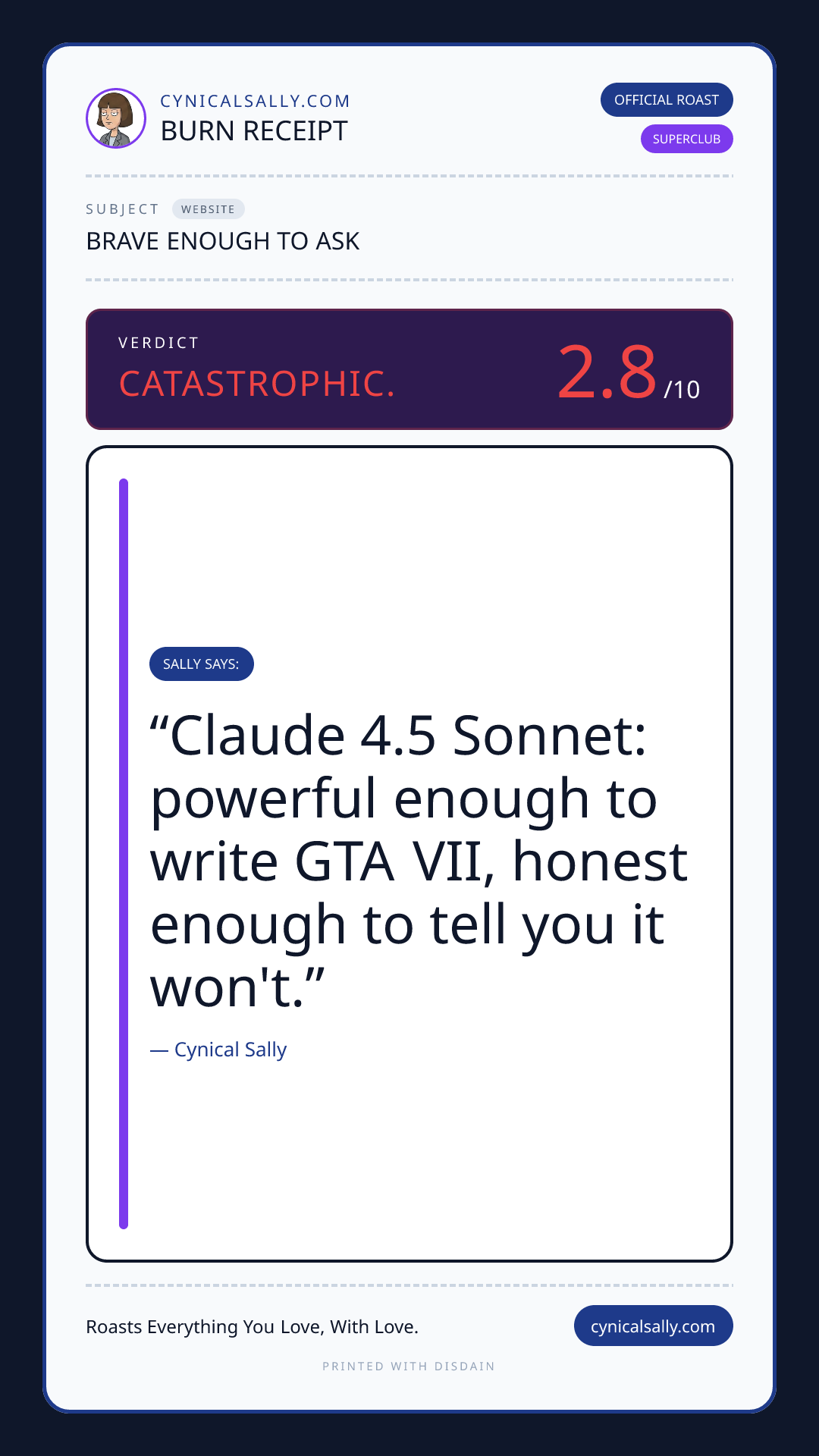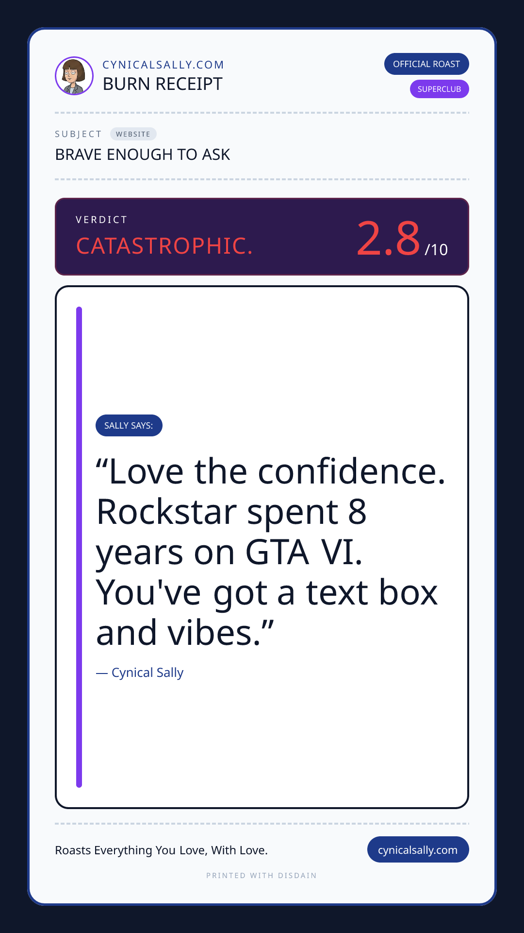 Drop a URL, screenshot, or file and Sally will give you the honest truth.